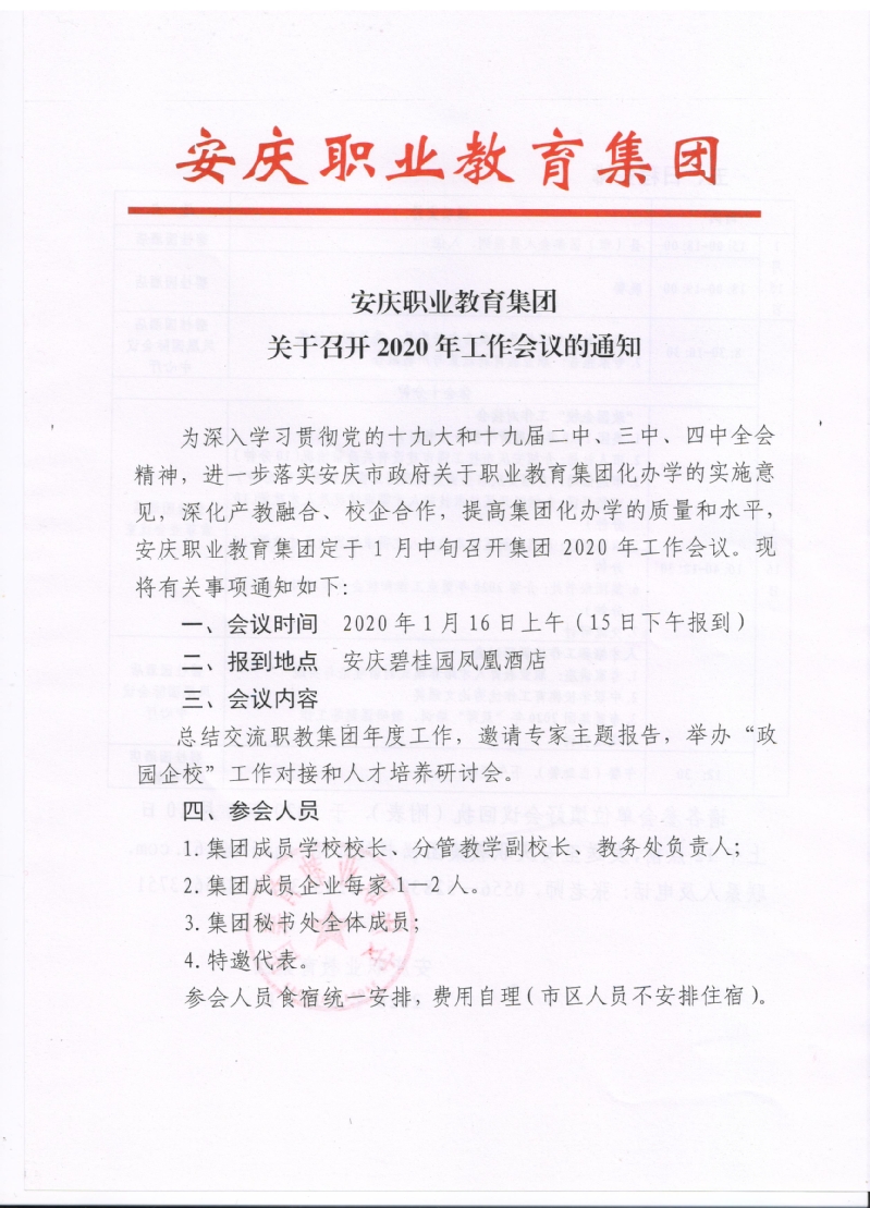 安慶職業(yè)教育集團(tuán)關(guān)于召開(kāi)2020年工作會(huì)議的通知