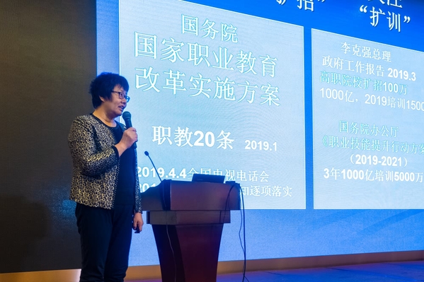 在人才培養工作培訓研討專題會上,陳亞玲主持集團2020年教研課題發布、“雙師”培訓計劃研討和專家報告學習交流,并對在中職學校德育工作優秀論文評選中獲獎的18位教師進行頒獎。