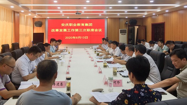 8月13日下午,安慶職業教育集團在安慶職業技術學院召開改革發展工作第三次聯席會議。集團理事長、安慶職業技術學院黨委書記王進主持會議。集團副理事長、安慶職院院長畢明生,市人社局局長聶立新、經信局局長楊旭東、教體工委副書記陳亞玲、市委督查考核辦副主任朱代全,市經開區管委會副主任汪建寧、人社局局長孫琳,高新區管委會主任唐厚明、筑夢新區管委會副主任何淵,安慶職院副院長譚維奇、李克讓,安慶電大校長吳雪恩,安慶工業學校校長孫慷,安徽化工學校校長徐志,安徽理工學校校長呂維山,安慶技師學院副校長徐波等出席會議,職教集團秘書處和安慶職院相關同志參加會議。