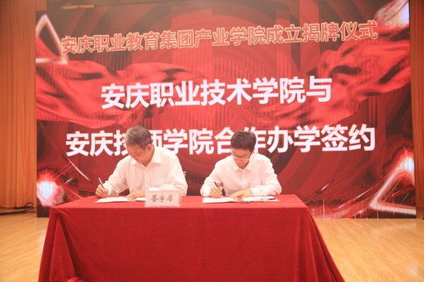 安慶職教集團產業學院是一種新型職教辦學組織形態,按照園區參與、校企共建、合作培養、定向就業的模式組建,采取現代學徒制和企業新型學徒制進行技術技能人才培養,實行學生共招、教學共管、基地共建、人才共育、利益共享、風險共擔。