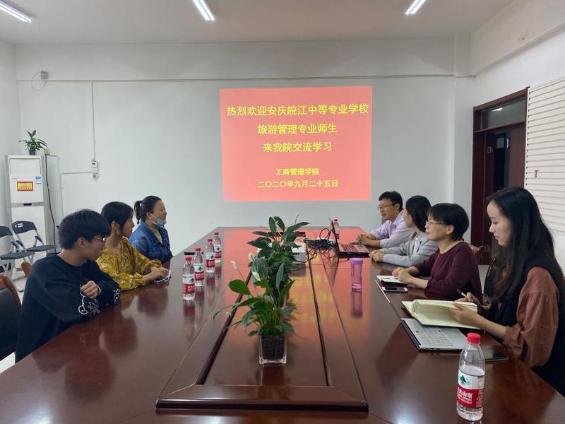 何赟代表工商管理學院熱烈歡迎安慶皖江中等專業學校師生3人的到來,并介紹了安徽機電職業技術學院旅游管理專業歷年在技能大賽方面取得的佳績。