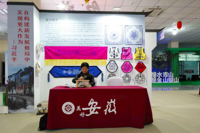 在“美好安徽”展區望江挑花展臺前,挑花傳承人精湛的技藝展示,一幅幅充滿地方文化特色的挑花作品,一件件傳統與現代完美融合的挑花工藝品,以豐富的文化內涵,細膩的線條,充分展現了古雷池大地優秀傳統手工藝術的魅力,吸引了參展非遺項目傳承人和眾多市民和游客前來觀看,對該校以非遺傳承基地為載體,將本地非物質文化遺產融入學校教育和學生生活,扎實開展“非遺進校園”活動及在非遺保護與傳承工作中取得的成就給予高度贊揚。