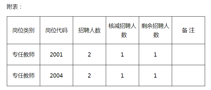 根據《2020年安慶職業教育集團公開招聘教師公告》的規定,經公開招聘領導小組研究同意,現將報名確認后達不到規定開考比例的部分崗位計劃核減情況予以公布(具體見附表)。