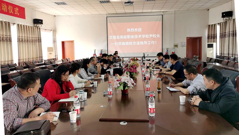 近日,靈璧縣高級職業技術學校書記、校長尹成新帶隊,一行12人來到江淮工業學校就B類校材料建設工作進行交流訪問。