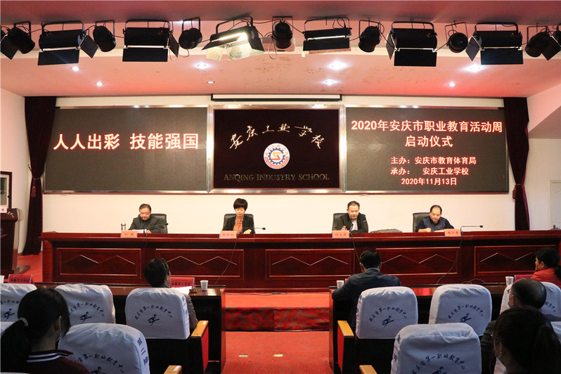 11月13日下午,安慶市2020年“職業教育活動周”活動啟動儀式在安慶工業學校舉行。安慶市高教工委專職副書記、教體工委副書記陳亞玲出席并宣布儀式開始,安慶工業學校黨委書記、校長孫慷致辭,市教體局副調研員何先強主持。市教體局職成教科負責人鮑介吾、各區教育局、各中職學校和學生代表200余人參加儀式。