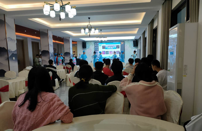 余振華首先致辭,并對安徽黃梅戲藝術職業學院領導到宜城科技學校考察指導表示了最熱烈的歡迎和最誠摯的感謝。緊接著,汪世和就宜城科技學校黃梅戲專業的開班情況做了簡要介紹,指出宜城科技學校經過多年的發展積淀,學校管理逐年上臺階,專業門類不斷拓展。尤其是去年以來,在余董事長和學校領導班子的帶領下,解放思想,改革創新,突破瓶頸,重抓專業建設,發揮職業教育優勢,突出地方特色,傳承具有安徽安慶地方特色的“中國五大劇種”之一的黃梅戲,積極開辦黃梅戲專業。去年,宜城科技學校第一屆黃梅戲專業畢業生13人報考安慶師范大學全部被錄取,這為學校黃梅戲專業招生、發展和壯大奠定了較為堅實的基礎。