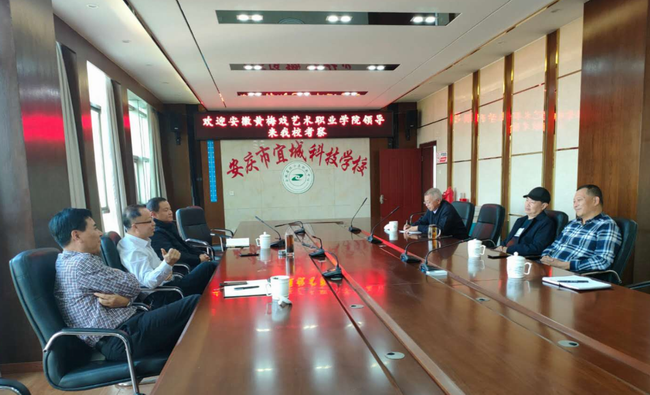 11月5日,安徽黃梅戲藝術職業學院黨委書記韓偉一行3人到安慶市宜城科技學校針對黃梅戲專業進行兩校聯合辦學交流座談。交流座談會在學校科技樓八樓會議室舉行,宜城科技學校董事長余振華先生,副校長汪世和及領導班子相關成員出席了會議。
