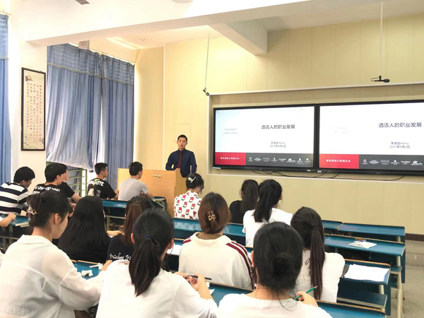 課上,李海龍結合自己的職業(yè)成長歷程,從“什么是酒店人”“我和碧桂園的故事”“未來看你們”三個方面介紹了酒店人的職業(yè)發(fā)展路徑,激發(fā)了學員們的職業(yè)興趣,并對他們的職業(yè)生涯規(guī)劃進行了指導。整個課堂氣氛活躍,互動環(huán)節(jié)學生積極提問并積極回答老師提出的問題。