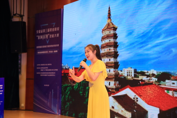 1017日,安徽省第三屆職業院校“BIM應用”技能大賽暨第四屆全國裝配式建筑職業技能競賽建筑信息模型技術員(學生組)選拔賽完成全部比賽任務,圓滿落幕(BIM全稱Building Information Modeling,即建筑信息模型)。安慶市副市長楊林,省教育廳高教處主任任雯君,安慶職業技術學院黨委書記童宏葵、校長畢明生等領導出席閉幕式,為獲獎選手和團體頒獎,與大賽評審專家合影留念。安徽省BIM工程中心副主任、安徽建筑大學土木工程系主任陳東對大賽進行總結點評。中國建設教育協會教育技術專業委員會秘書長、廊坊市中科建筑產業化創新研究中心副主任張建奇,安徽省“1+XBIM 證書聯盟秘書長、安慶職院副校長譚維奇分別講話。安慶職院酒店管理專業教師沈娟娟主持儀式。