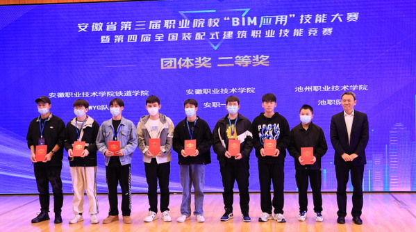 1017日,安徽省第三屆職業院校“BIM應用”技能大賽暨第四屆全國裝配式建筑職業技能競賽建筑信息模型技術員(學生組)選拔賽完成全部比賽任務,圓滿落幕(BIM全稱Building Information Modeling,即建筑信息模型)。安慶市副市長楊林,省教育廳高教處主任任雯君,安慶職業技術學院黨委書記童宏葵、校長畢明生等領導出席閉幕式,為獲獎選手和團體頒獎,與大賽評審專家合影留念。安徽省BIM工程中心副主任、安徽建筑大學土木工程系主任陳東對大賽進行總結點評。中國建設教育協會教育技術專業委員會秘書長、廊坊市中科建筑產業化創新研究中心副主任張建奇,安徽省“1+XBIM 證書聯盟秘書長、安慶職院副校長譚維奇分別講話。安慶職院酒店管理專業教師沈娟娟主持儀式。