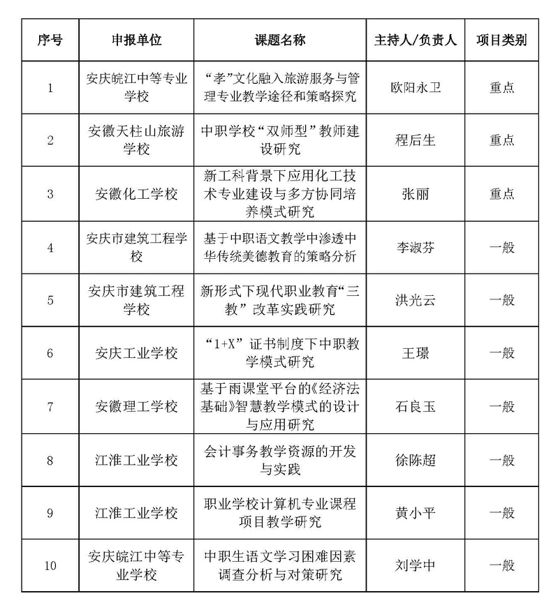 根據《安慶職業教育集團關于做好2020年教學改革研究課題中期檢查及2021年教學改革研究課題申報工作的通知》文件精神,經個人申報、學校推薦,集團秘書處按照相關程序組織形式審查、專家評審,現對集團2021教學改革研究課題擬立項名單進行公示。