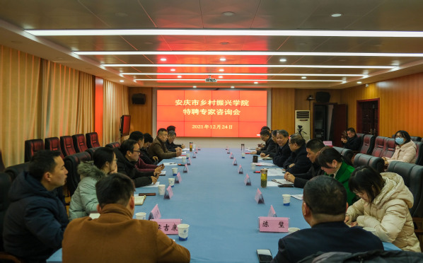 12月24日上午,安慶市鄉村振興學院特聘專家咨詢會在安慶職業技術學院召開。安慶職院黨委委員、副校長李克讓主持,安慶市鄉村振興局副局長王輝講話,培訓部、校企合作辦及校內外專家參加咨詢會,共同商討鄉村振興學院整體培訓規劃。
