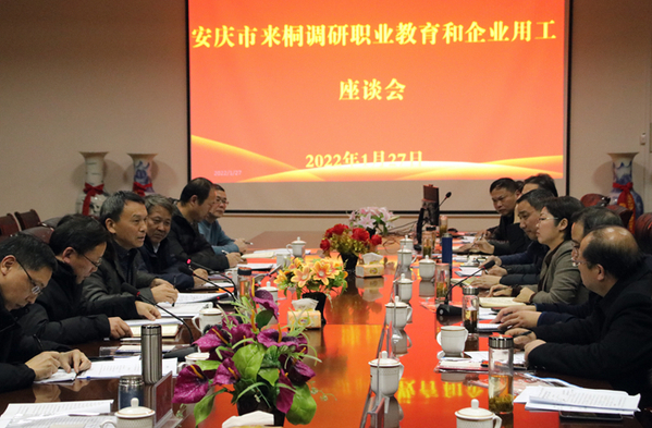 127日,安慶職業(yè)技術(shù)學(xué)院黨委書記童宏葵率隊調(diào)研桐城市職業(yè)教育發(fā)展情況。桐城市委副書記金秋明,桐城市人大常委會副主任、人社局局長詹向前,副市長汪杰賢,政協(xié)副主席、教育局局長劉決成,安慶市教體局副局長潘連宇、四級調(diào)研員吳宗亞,安慶職院黨委副書記李克讓及安慶職院校企合作辦、招生就業(yè)處負(fù)責(zé)同志參加調(diào)研。