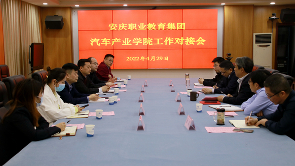 4月29日下午,安慶職業技術學院在綜合辦公樓第二會議室召開安慶職教集團汽車產業學院工作對接會。安慶市經開區人社局副局長關偉,安徽江淮汽車集團股份有限公司安慶分公司總經理江東、振宜新能源汽車科技有限公司經理安亞萍、安慶福萊克斯動力科技有限公司運營總監徐興參加了會議。會議由校黨委副書記、職教集團秘書長、汽車產業學院院長李克讓主持。安慶職院機電工程學院、教務處、招就處、校企合作辦負責同志參加了對接會。