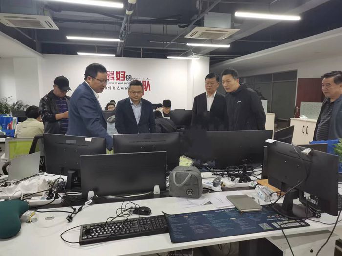 陳東一行認真聆聽了峰速網絡董事長余賢良對公司發展的介紹。在參觀學習過程中,大家積極提問、踴躍體驗,不時地與工作人員交流、探討,學習氣氛濃厚。