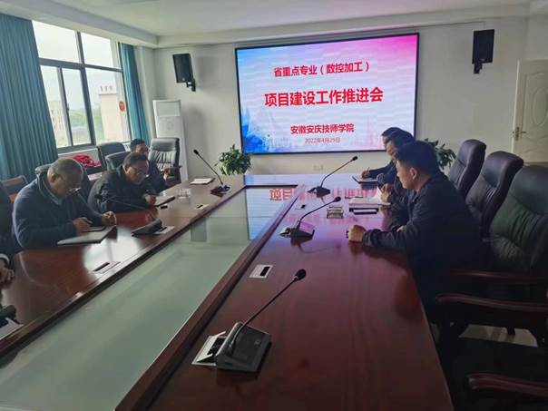 2022年4月29日,“省級重點專業(數控加工)項目建設”工作推進會在安慶技師學院實訓樓②四樓會議室召開。會議由技師學院機電工程系主任陳學斌主持,徐波副院長、相關部門負責人和項目建設組成員參加會議。