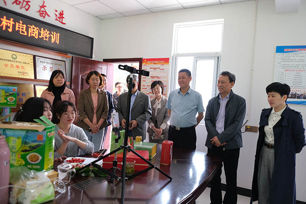 緊接著,童宏葵來(lái)到網(wǎng)絡(luò)直播室,看望正在這里指導(dǎo)直播帶貨的教師徐奕勝和王瑞陽(yáng)、孫澤芳主播。在離村部不遠(yuǎn)的一片茶葉園里,幾十名茶農(nóng)正在聽章杰義老師講授茶葉種植技術(shù),童宏葵走進(jìn)田間課堂,仔細(xì)察看上課效果,親切地詢問(wèn)大家是否聽得懂老師講課。并抽空和茶農(nóng)交流茶樹常規(guī)繁育和茶樹修剪技術(shù)、病蟲害預(yù)防、土壤管理、施肥技術(shù)、茶樹采摘注意事項(xiàng)等,贏得茶農(nóng)們陣陣掌聲。在生豬養(yǎng)殖大戶段迎春養(yǎng)殖場(chǎng),十幾位養(yǎng)豬戶正在聽畜牧局專家董尚青講課,童宏葵詳細(xì)詢問(wèn)了段迎春家飼養(yǎng)的生豬品種、銷售渠道和常見病的預(yù)防及處理情況,并讓他經(jīng)常和學(xué)校保持聯(lián)系,及時(shí)得到學(xué)校在技術(shù)方面的幫助。