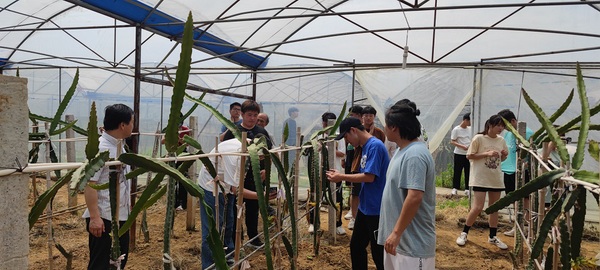 座談會上,沈大風所長從“三品一標”申報條件、監管現狀及未來發展趨勢等方面給同學們上了生動的一課。會后,沈大風所長帶領同學們參觀了安慶高老莊生態農業有限公司的葡萄、火龍果、無花果等種植基地,對該公司“三品一標”品種種植規范等進行了詳細講解,并對同學們現場提出的問題及時答疑解惑,加深同學們對課本知識的理解。