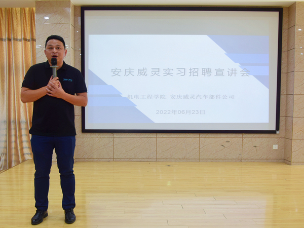 為進一步服務和支持安慶市重點招商引資項目,同時也為20級學生提供高質量就業實習崗位,促進高質量就業,6月23日下午,安慶職業技術學院機電工程學院邀請安慶威靈汽車部件有限公司在1號教學樓216教室為2020級學生舉行實習宣講會。