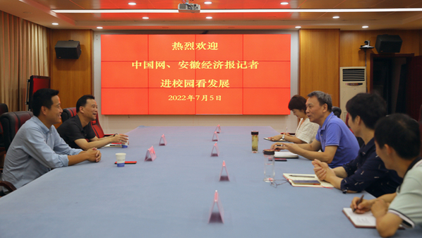 7月5日下午,安徽經濟報安慶記者站站長秦國根、中國網安慶總監楊建來到安慶職業技術學院,進校園看發展,并舉行座談。安慶職院黨委書記童宏葵出席座談會并講話。學校黨委委員、宣傳部長吳何珍主持座談會。