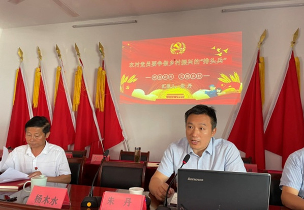 會(huì)上,副校長(zhǎng)朱丹作了題為《農(nóng)村黨員要爭(zhēng)做鄉(xiāng)村振興的“排頭兵”》黨課輔導(dǎo)。他用生動(dòng)的語言、豐富的事例和大量的史實(shí),詳細(xì)闡述了共產(chǎn)黨員在黨的百年發(fā)展史中所發(fā)揮的作用,勉勵(lì)在座的農(nóng)村黨員要在鄉(xiāng)村振興中發(fā)揮應(yīng)有的作用。黨課報(bào)告主題鮮明,案例豐富,內(nèi)容深刻,講解透徹,充分展現(xiàn)了中國共產(chǎn)黨人的戰(zhàn)斗堡壘作用。他強(qiáng)調(diào),全村黨員要深入學(xué)習(xí)中國共產(chǎn)黨百年奮斗的歷史經(jīng)驗(yàn),把黨史學(xué)習(xí)教育內(nèi)化于心、外化于行,勤學(xué)習(xí)、多思考、埋頭苦干、真抓實(shí)干,在鄉(xiāng)村振興中發(fā)揮“排頭兵”的作用。以鄉(xiāng)村振興的豐碩成果迎接黨的二十大勝利召開。