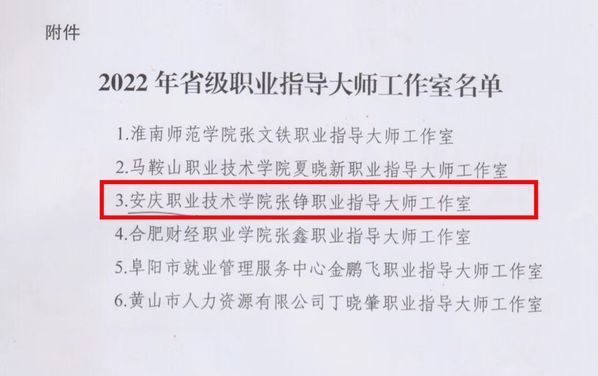 安慶職業技術學院“張錚職業指導大師工作室”獲評省級職業指導大師工作室