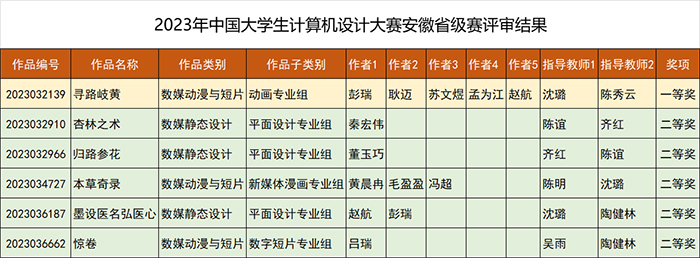 近日,2023年中國(guó)大學(xué)生計(jì)算機(jī)設(shè)計(jì)大賽安徽省級(jí)賽評(píng)審結(jié)果出爐,安慶職業(yè)技術(shù)學(xué)院信息技術(shù)學(xué)院教師指導(dǎo)的學(xué)生作品共獲得一等獎(jiǎng)1項(xiàng)、二等獎(jiǎng)5項(xiàng)、三等獎(jiǎng)5項(xiàng)的好成績(jī)。