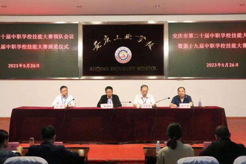 2023年5月26日,由安慶市教體局、財政局和人社局共同舉辦的市第二十屆中等職業學校技能大賽在安慶工業學校舉行。市委教體工委副書記張復雙,市教體局調研員吳宗亞,安慶工業學校黨委書記、校長孫慷參加相關活動并頒獎。儀式由市教體局職成教科負責人鮑介吾主持。