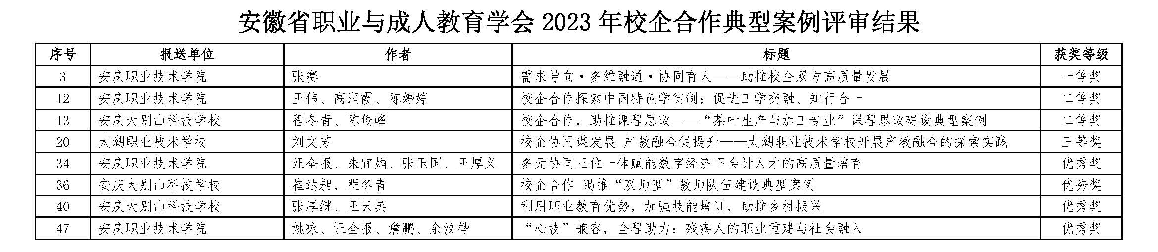 近日,安徽省職業與成人教育學會公布了2023年“中國?安徽職教論壇”交流學術論文和校企合作典型案例獲獎名單,集團9所院校共有21篇論文和8篇典型案例獲獎。(文:葛尹睿 審稿:楊元綱)
