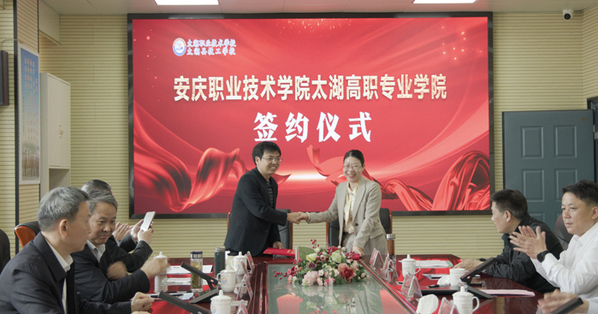 4月23日上午,安慶職業(yè)技術(shù)學(xué)院太湖高職專業(yè)學(xué)院簽約暨揭牌儀式在太湖職業(yè)技術(shù)學(xué)校隆重舉行。安慶職院黨委書記童宏葵、太湖縣委書記朱小兵出席簽約儀式并為太湖高職專業(yè)學(xué)院揭牌。安慶職業(yè)技術(shù)學(xué)院太湖高職專業(yè)學(xué)院的成立標(biāo)志著該校在“立足地方服務(wù)地方”的辦學(xué)方向、優(yōu)化安慶高等職業(yè)教育布局、為全市經(jīng)濟(jì)社會高質(zhì)量發(fā)展提供人才支撐的道路上,又邁出了堅實的一步。