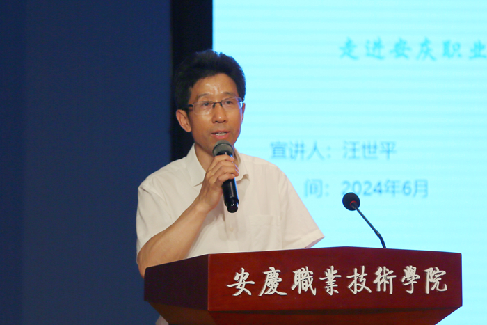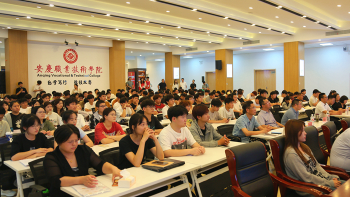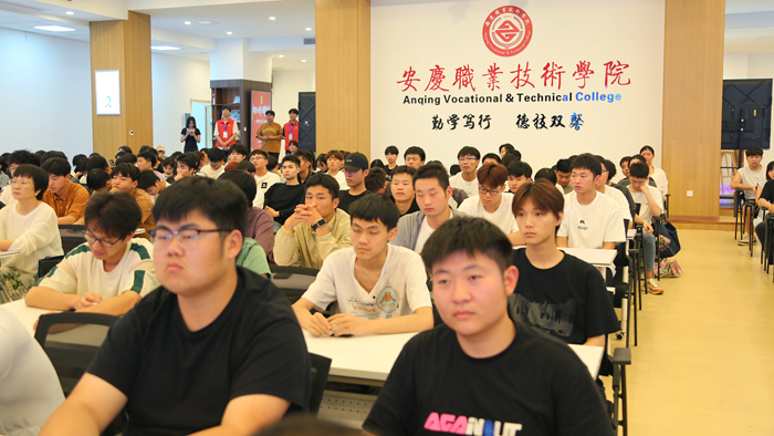6月12日下午,安慶職業技術學院實訓中心一樓報告廳里喜氣洋洋,青春洋溢,“區長接你來上崗”招聘宣講活動在這里舉行。校長畢明生出席并致歡迎辭,迎江區委副書記、區長汪世平求才若渴,率領區委組織部、區經信局、區人社局、區商務局、區科技局的主要領導,迎江經開區負責同志和在迎的7家重點企業負責人來到活動現場,各二級學院負責人、畢業班輔導員、招生就業處全體人員以及2025屆畢業生代表300多人參加活動,校黨委副書記李克讓主持。
