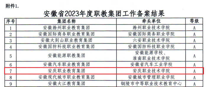 近日,安徽省教育廳、安徽省經(jīng)濟和信息化廳共同發(fā)文,安慶職教集團在全省60家職教集團2023年度工作運行情況綜合評價中,以卓越的表現(xiàn)和顯著的成果再度獲評安徽省A類職教集團,實現(xiàn)連續(xù)六年榮獲安徽省A類職教集團稱號。