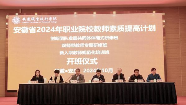 10月20日,安慶職業技術學院承辦的安徽省2024年高職院校教師素質提高計劃省級配套項目——土木建筑大類創新團隊發展共同體伴隨式研修、“雙師型”教師專題研修班、新入職教師規范化培訓班,在安慶碧桂園鳳凰酒店開班。校長畢明生出席開班儀式并致歡迎辭,安徽省高等學校師資培訓中心副主任張韜講話,安慶職院黨委副書記李克讓主持開班儀式,國家創新團隊帶頭人、黃大年團隊帶頭人、國家級教學名師陳月萍教授介紹了培訓情況。學校相關學院的負責人和來自全省各高職院校的82名參訓教師參加。