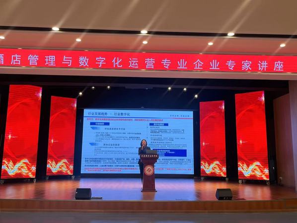 近日,安慶職業技術學院管理服務學院面向2024級酒店管理與數字化運營專業新生舉辦企業專家講座。本次講座邀請安慶市會展中心管理有限公司會議服務分公司總經理丁敏女士主講,該院教學管理負責人主持會議,2024級新生輔導員及專業建設負責人參加了講座。