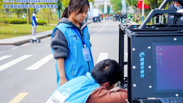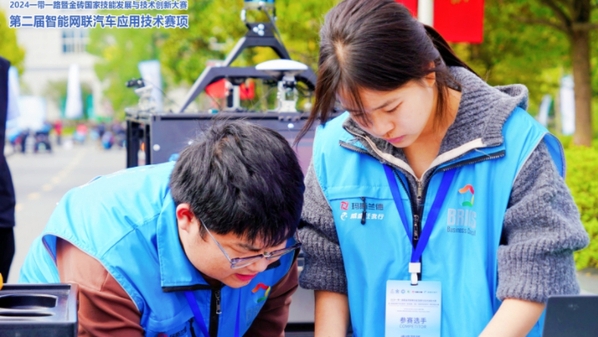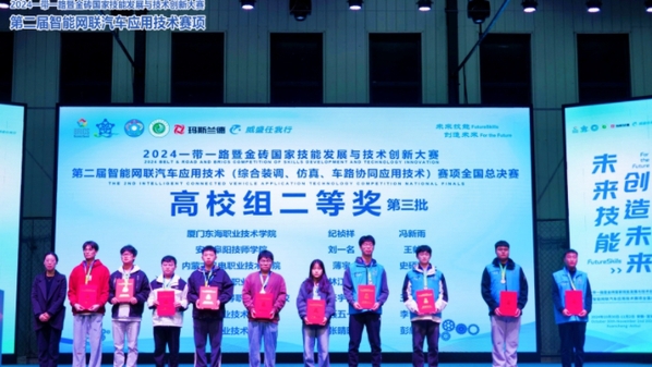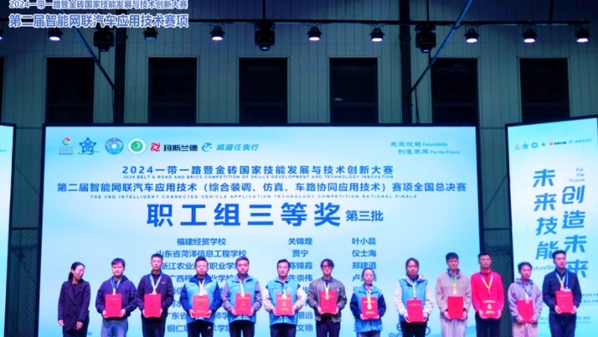 10月31日至11月2日,2024“一帶一路”暨金磚國家技能發展與技術創新大賽之第二屆智能網聯汽車應用技術(綜合裝調、仿真、車路協同應用技術)賽項全國總決賽在宣城職業技術學院舉行。安慶職業技術學院機電工程學院舒滿征老師和單家正老師指導的張晴晴和彭耀祥兩位學生獲得高校組全國二等獎,教師組鮑成和邱雨兩位老師獲得職工組全國三等獎,舒滿征和單家正老師獲得優秀指導教師稱號。