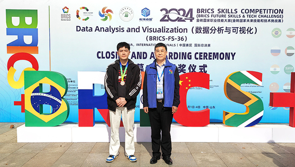 11月4日上午,2024金磚國家職業(yè)技能大賽“數(shù)據(jù)分析與可視化”賽項(xiàng)中國賽區(qū)國際總決賽在山東服裝職業(yè)學(xué)院閉幕。經(jīng)過兩天的奮勇拼搏,安慶職業(yè)技術(shù)學(xué)院信息技術(shù)學(xué)院疏國會(huì)老師指導(dǎo)的劉珍宏同學(xué)獲得一等獎(jiǎng),疏國會(huì)獲得優(yōu)秀指導(dǎo)專家稱號(hào)。