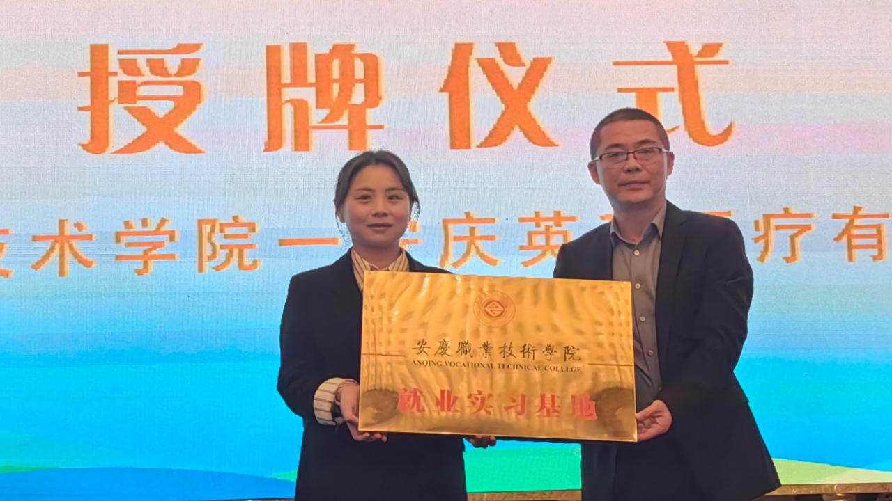 活動現場,安慶職院與安慶英科醫療有限公司舉行了就業實習基地授牌儀式。(文、圖:陳慧玲 審稿:桂 駿)