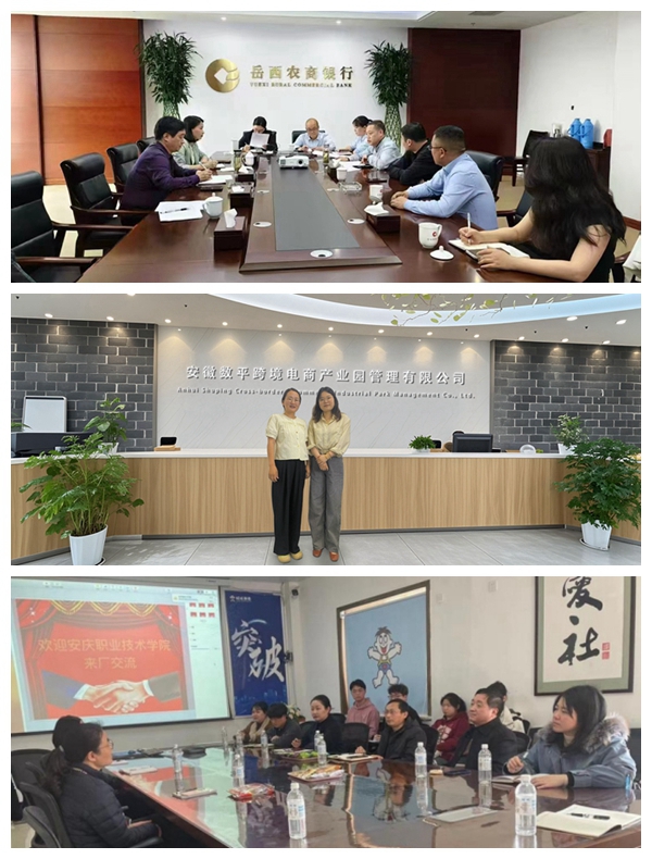 為做好2025級(jí)人才培養(yǎng)方案修訂工作,4月22日至5月10日期間,安慶職業(yè)技術(shù)學(xué)院現(xiàn)代商務(wù)學(xué)院組織專(zhuān)業(yè)負(fù)責(zé)人帶領(lǐng)團(tuán)隊(duì)教師赴安徽岳西農(nóng)村商業(yè)銀行股份有限公司、安徽天鵝科技實(shí)業(yè)(集團(tuán))有限公司、國(guó)汽大有時(shí)空科技(安慶)有限公司、安徽環(huán)豐物流有限公司、安慶旺旺食品有限公司、安徽省一品鮮菇業(yè)有限公司、安徽數(shù)平跨境電商產(chǎn)業(yè)園管理有限公司、安徽云霽電子商務(wù)有限公司等多家省內(nèi)企業(yè)開(kāi)展調(diào)研論證。