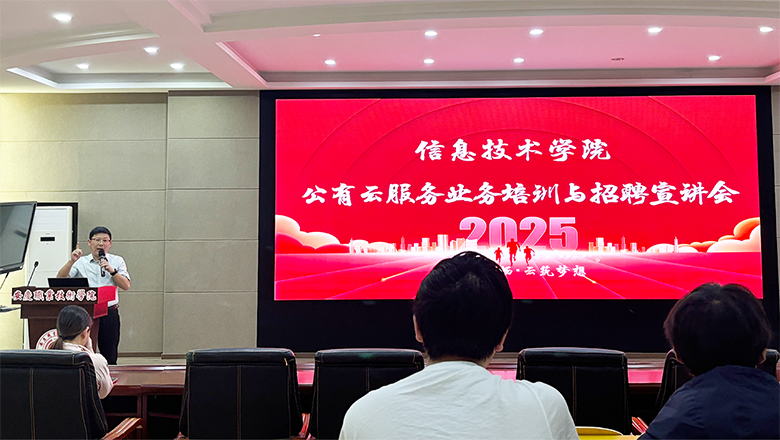 5月14日,訂單班合作企業安慶安暢網絡科技有限公司走進安慶職業技術學院信息技術學院,在2號教學樓信仰報告廳成功舉辦公有云服務業務培訓暨崗位招聘答疑會。活動吸引了來自計算機網絡技術、計算機應用技術等專業的90余名學生參與。該院學生工作負責人主持活動。