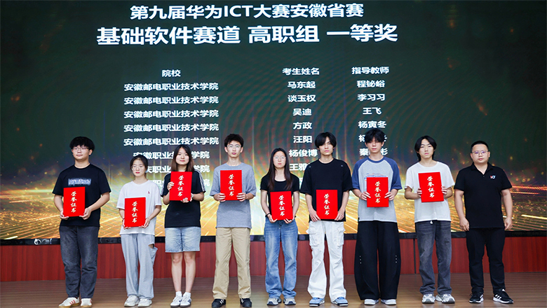 6月13日,第九屆華為ICT大賽安徽省賽頒獎典禮暨華為ICT人才聯盟雙選會在安徽工業經濟職業技術學院舉行。安徽省教育廳高教處三級調研員梅梅到會指導。安慶職業技術學院信息技術學院學生在此次大賽上獲一等獎3項,指導教師、獲獎學生代表應邀出席頒獎典禮和雙選會。