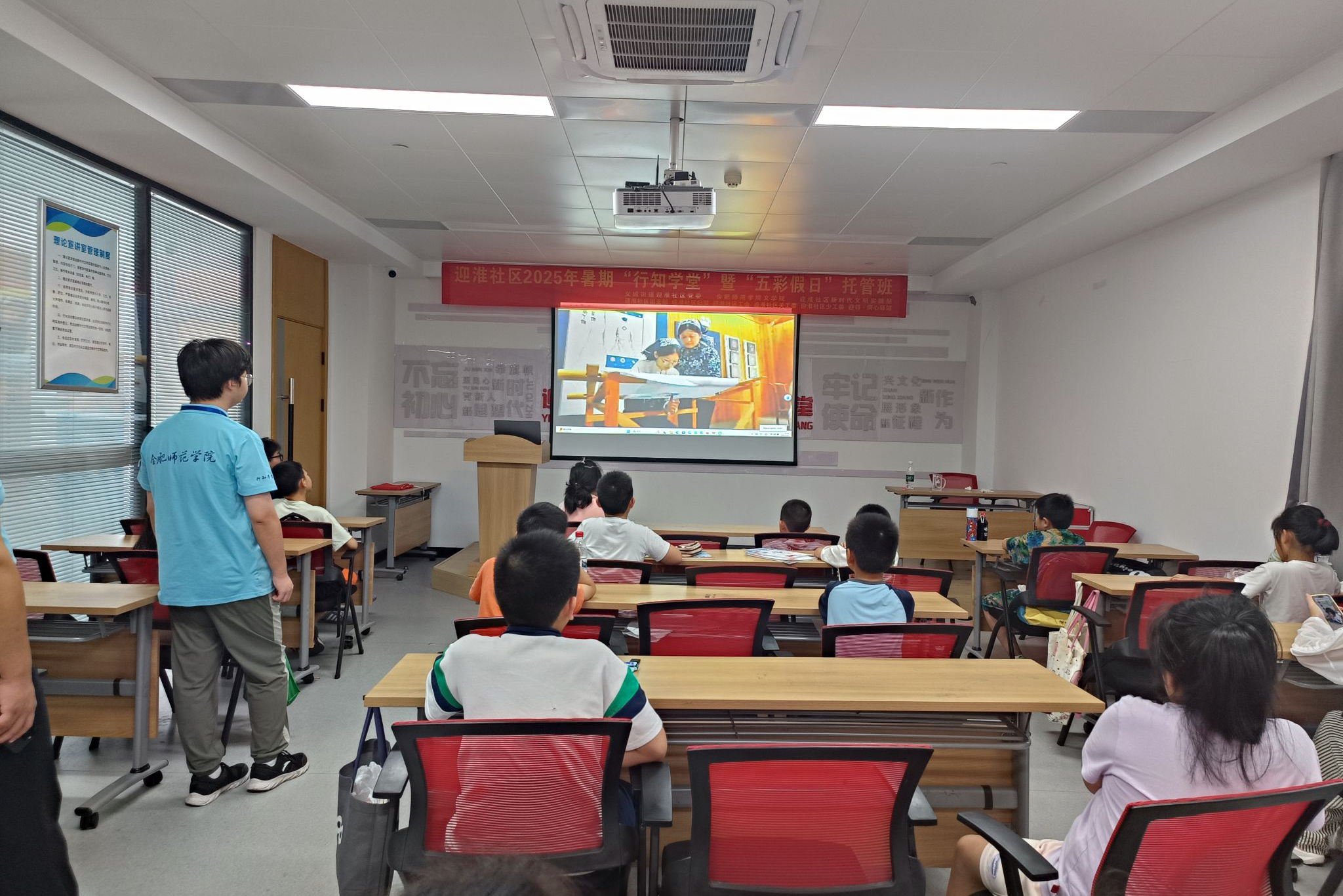 為幫助學員深入理解望江挑花的文化價值,活動特別設置“非遺小講堂”環節,播放何冬霞對國家非遺望江挑花的介紹視頻,帶領小朋友們云游安慶皖江中等專業學校國家非遺望江挑花保護與傳承基地。展覽館內陳列的挑花作品琳瑯滿目,每一幅都蘊含著深厚的文化底蘊。而基地的迎賓廳,更是仿照當年望江挑花進入人民大會堂安徽廳的裝飾場景復制而成。望江作為“三孝之鄉”,迎賓廳內還特別展示了以二十四孝為主題的挑花作品,傳遞著孝道文化的深刻內涵。