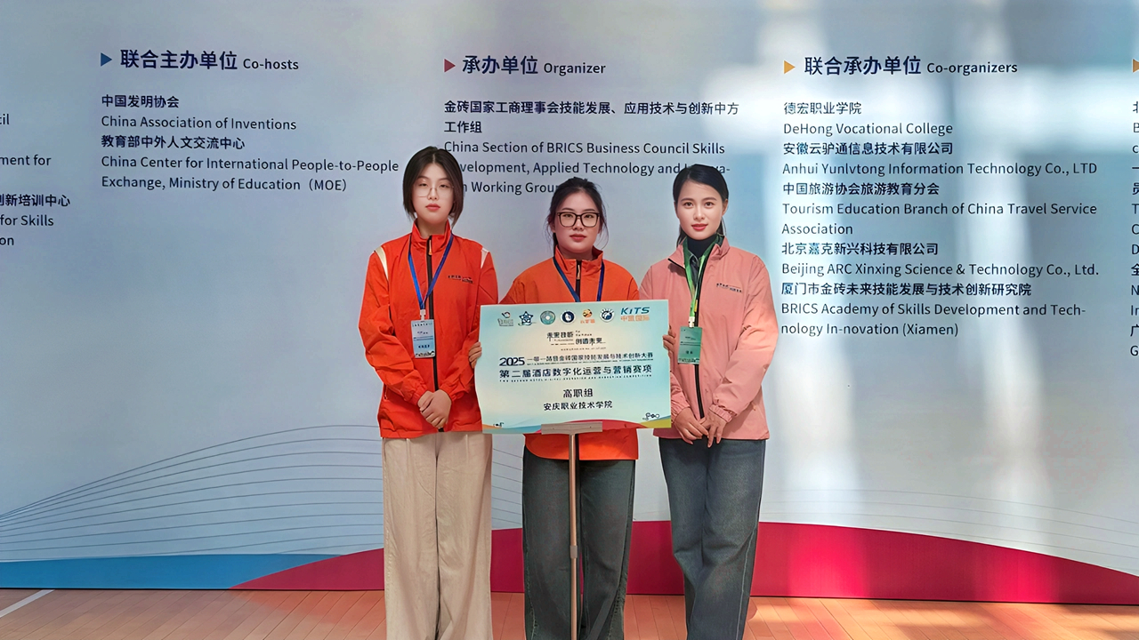 近期,2025年“一帶一路”暨金磚國家技能發展與技術創新大賽“酒店數字化運營與營銷”“幼兒照護”賽項全國總決賽相繼落幕,安慶職業技術學院學子憑借扎實的專業功底、出色的實踐能力與創新思維,取得佳績。